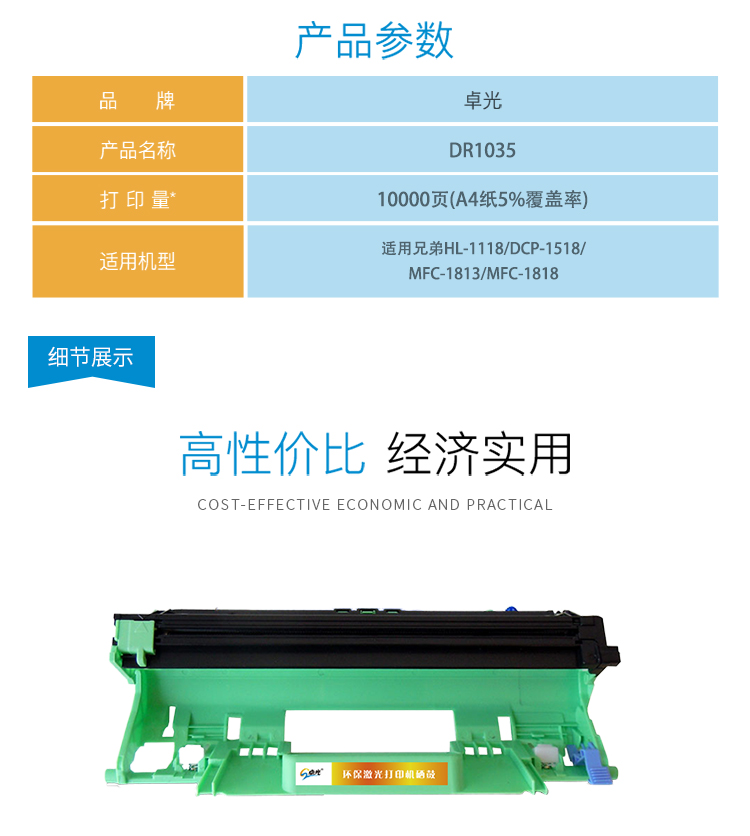 卓光DR1035硒鼓組件適用聯(lián)想m7206 m7216 m7206w m7216 1618w LJ2205 2206 兄弟1618w tn1035