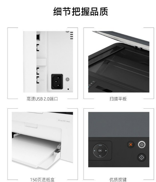 惠普(HP) 136nw無(wú)線(xiàn)a4黑白激光打印機(jī)辦公家用三合一多功能打印復(fù)印掃描一體機(jī) (打印復(fù)印掃描+USB+有線(xiàn)+無(wú)線(xiàn)連接)